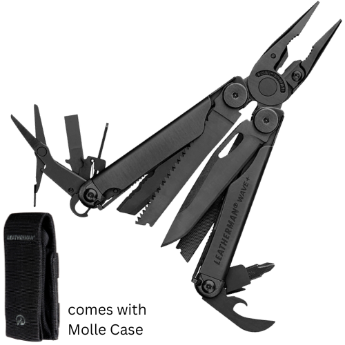 DESCRIPTION: Leatherman Wave Plus Black Oxide Multi-Tool 420HC S/S Blades w/MOLLE Black Sheath - Box