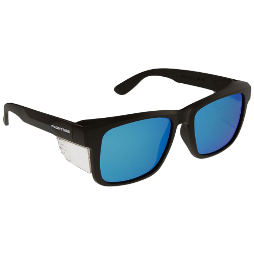 DESCRIPTION: SAFETY GLASSES FRONTSIDE POLARISED BLUE REVO LENS WITH BLACK FRAME