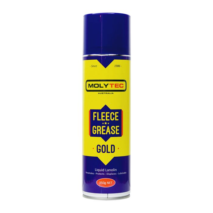 DESCRIPTION: Fleece Grease Aerosol -350g FEATURES: Aerosol form Fleece Grease dries to a fine film. Water displacer, penetrator and lubricant. Provides lanolins famous corrosion protection. For use on ferrous and non-ferrous materials and many other surfaces.