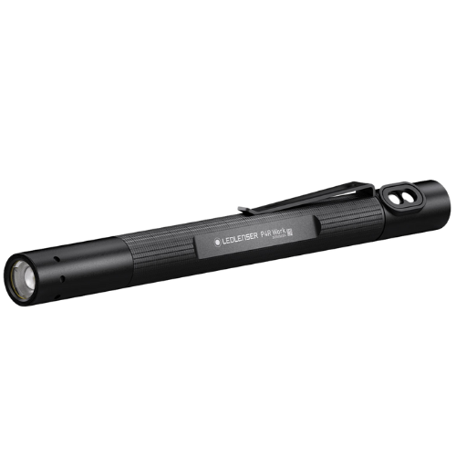 Details: Brightness and longevity are very important with this pen lamp. The P4R Work shines for its size with a superior light output of 200 lumens and has a removable rechargeable battery with micro-USB interface for eco-friendly charging. It offers a slim, lightweight design with Endcap Switch and pocket clip. The Ledlenser patented Advanced Focus System also provides precise light in spot and flood. Features: Small, lightweight, powerful pen lamp 55 g light (incl. battery), 150 mm long (defocused), up to 200 lm bright, Outstanding Ledlenser light quality brightness, beam range and run time are ideally matched to the energy source, Advanced Focus System for efficient, precise flood and spot lighting, Practical clip to attach to a shirt or trouser pocket, Eco-friendly, rechargeable battery (via micro-USB port). Specs: Lumens: 200lm (Power) - 90lm ( Mid Power) - 15lm (Low Power), Beam distance: 90m (Power) - 60m ( Mid Power) - 15m (Low Power), Runtime: 1.5h (Power) - 3h ( Mid Power) - 25h (Low Power), Weight: 55g (incl. batteries), IP Class: IP54, Technology: Advanced Focus System.