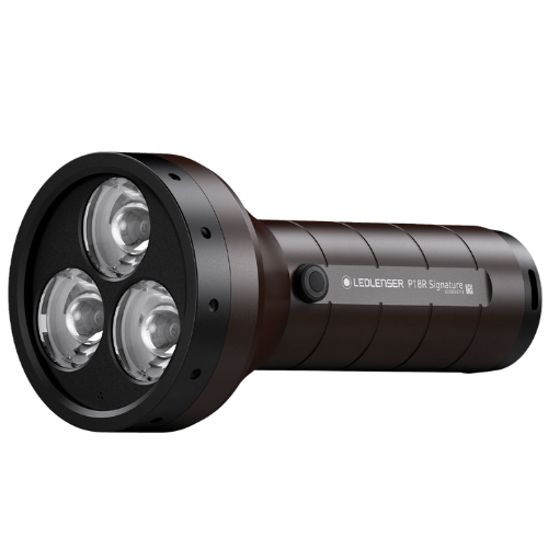 Details: Nothing compares to the Ledlenser P18R Signature torch with its 4500 lumens and constant illumination over a long period of time, the ability to quickly and efficiently go from a spot or flood all while maintaining the quality of light quickly. It can be programmed to a variety of light functions and its hard anodised finish protect against wear and corrosion. Add the rechargeable battery via magnetic charging and you have the everything you want in a torch for all your outdoor adventures. Features: High-end flashlight with up to 4500 lumens and Constant Light for constant luminous flux over a long period of time, Advanced Focus System for efficient, precise flood and spot lighting, Smart Light Technology for custom light functions, Hard-anodised body provides added protection against wear and corrosion, Convenient charging of the battery with the Magnetic Charge System. Specs: Lumens: 4500lm (Boost) - 2600lm (Power) - 1000lm (Mid Power) - 30lm (Low Power), Beam distance: 720m (Boost) - 420m (Power) - 260m (Mid Power) - 50m (Low Power), Runtime: 2.5h (Power) - 4.5h (Mid Power) - 70h (Low Power), Weight: 637g (incl. batteries), IP Class: IP54, Features: Transportation lock , Dimmable , Flicker Free, Memory Function, Back-Up Light, Technology: Advanced Focus System, Emergency Light, Rapid Focus, Smart Light Technology, Temperature Control System, Magnetic Charge System, X-Lens Technology.