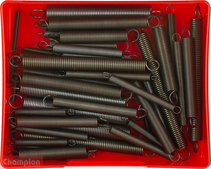 Description: Our extension springs create a strong resistance to a pulling force, making them useful for many applications in the industrial and automotive world. 48 pieces covering 12 sizes from 25m to 120mm in length, with a plain finish. Metric, Plain Finish, 12 Sizes: 5mm to 12mm Dia., Lengths: 25mm to 120mm, 48 Pieces