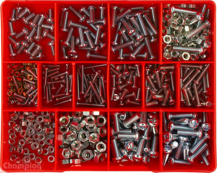 They feature a self-threading mechanism and Phillips Head Drive for easy usage with screwdrivers. This assortment kit contains 520 screws in 12 different sizes, ranging from 3mm to 6mm in diameter and 10mm to 25mm in length, ensuring a perfect fit for a variety of applications. Metric, Zinc Plated, Phillips Head Drive, Pan Head, 16 Sizes: 3mm to 6mm & 10mm to 25mm, 520 Pieces