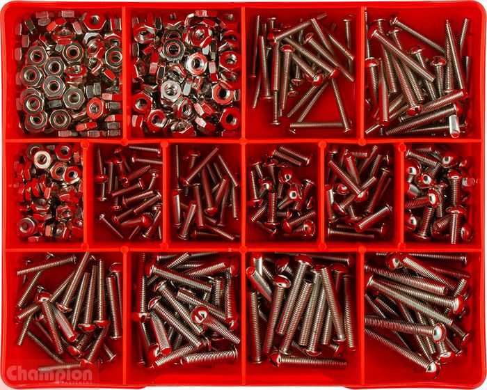 Description: Imperial, Nickel Plated, Fine Thread, Slotted Drive, Round Head, 14 Sizes: 6/40? to 10/32?, 300 Pieces