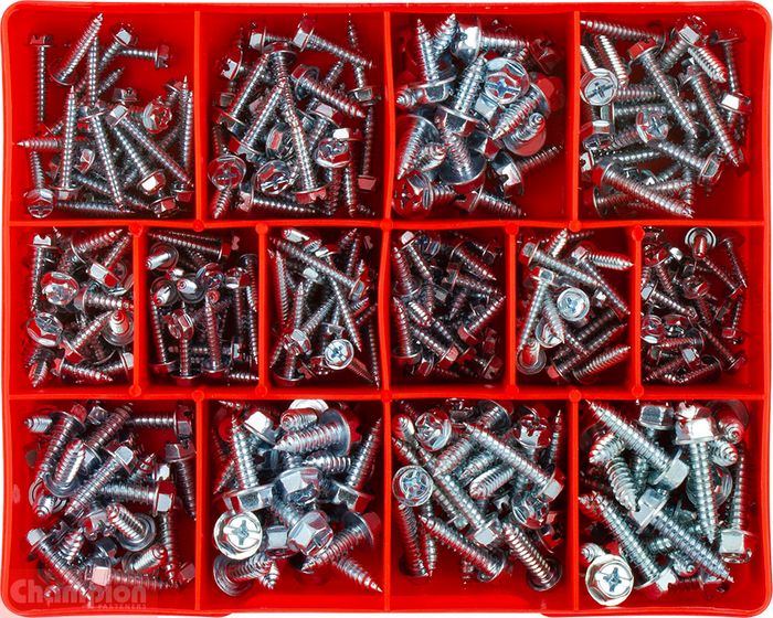 Description: Metric, Zinc Plated, Hex Head, 14 Sizes: 3.5mm to 6.3mm, Lengths: to 25mm, 350 Pieces