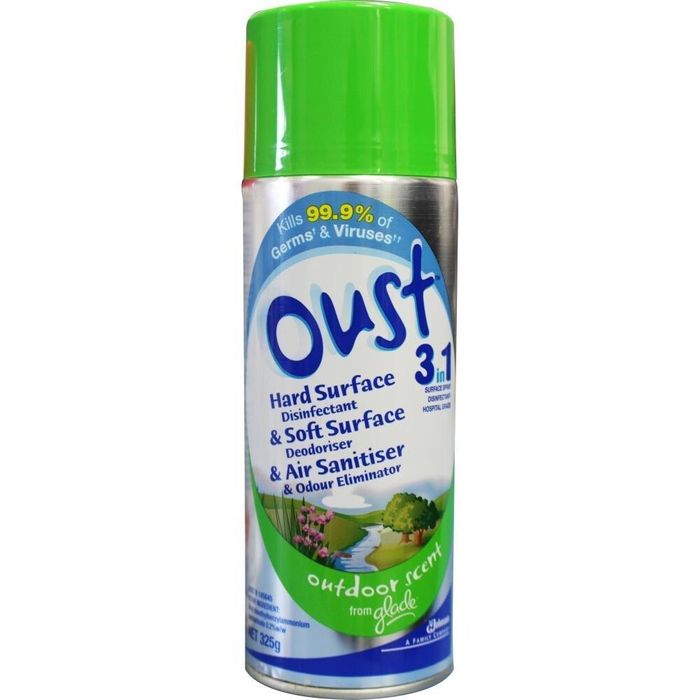 Description: Oust 3-in-1 is a Hard Surface Disinfectant, Soft Surface Deodoriser, and Air Sanitiser and Odour Eliminator, Hospital grade disinfectant properties, Oust .kills 99.9% of germs, bacteria, viruses and fungi on hard, non-porous surfaces, Eliminates many unpleasant and lingering odours.
