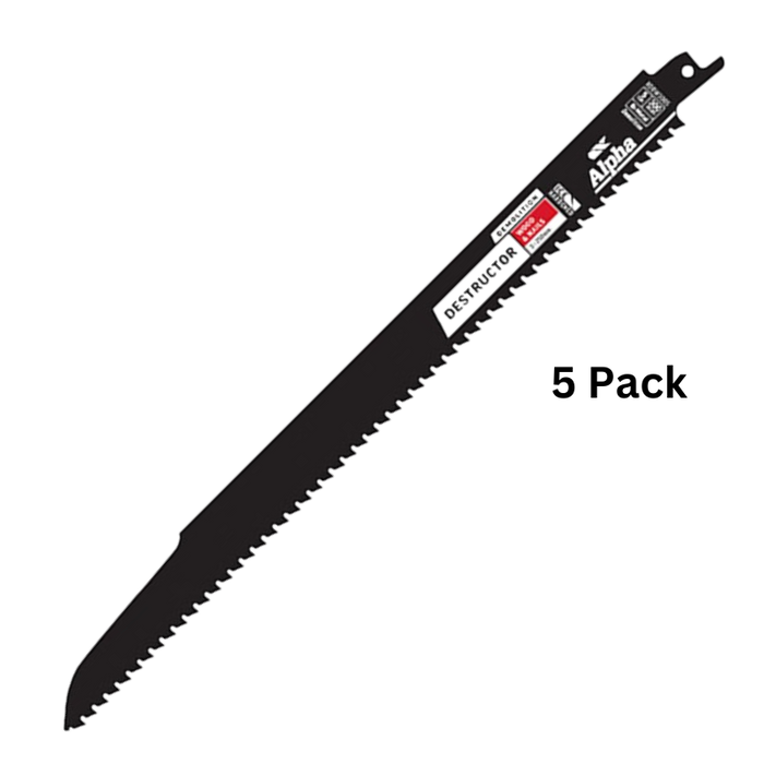 DESCRIPTION: Destructor Demolition - Wood & Nails - Recip Blade, 5 TPI, 300mm - 5 Pack