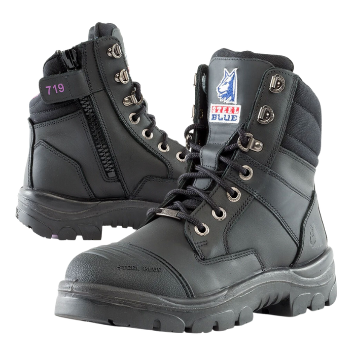 Description: 150mm lace-up and zip ankle boot with padded collar and tongue, Premium water resistant leather stitched with nylon thread. Non-corrosive lacing , 200J safety steel toe cap, Industrial grade side zip for easy on and easy off, Abrasion resistant scuff cap, True ladies fit - specially designed for women with a smaller in-step and shorter ankle length, This boot is lined with Baltico®, which is a soft, non-abrasive, hydrophobic material that wicks perspiration away from the foot, enabling the skin to remain cool and dry, A full length footbed that is inserted into the footwear to offer additional support and comfort. This footbed is made from soft polyurethane that will retain its shape and thickness throughout the life of the boot, Heavy-duty, flexible anti-bacterial non-woven insole, Directly moulded Polyurethane midsole for greater shock absorption, Antistatic Thermoplastic Polyurethane (TPU) outsole for superior wear properties. Heat resistant to 130ºC.