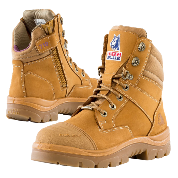 Description: 150mm lace-up and zip ankle boot with padded collar and tongue, Premium water resistant leather stitched with nylon thread. Non-corrosive lacing , 200J safety steel toe cap, Industrial grade side zip for easy on and easy off, Abrasion resistant scuff cap, True ladies fit - specially designed for women with a smaller in-step and shorter ankle length, This boot is lined with Baltico®, which is a soft, non-abrasive, hydrophobic material that wicks perspiration away from the foot, enabling the skin to remain cool and dry, A full length footbed that is inserted into the footwear to offer additional support and comfort. This footbed is made from soft polyurethane that will retain its shape and thickness throughout the life of the boot, Heavy-duty, flexible anti-bacterial non-woven insole, Directly moulded Polyurethane midsole for greater shock absorption, Antistatic Thermoplastic Polyurethane (TPU) outsole for superior wear properties. Heat resistant to 130ºC.