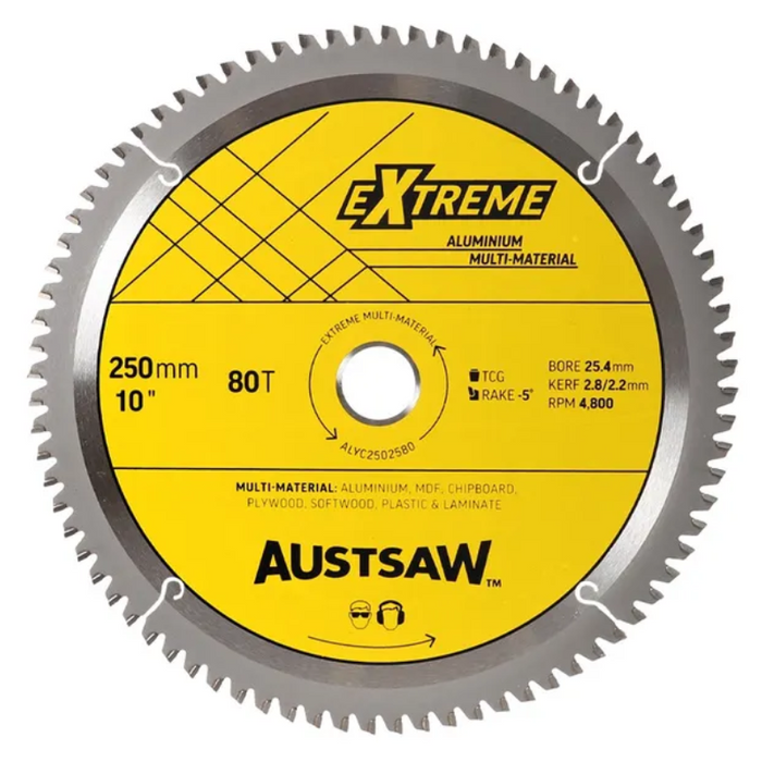 DESCRIPTION: Austsaw - 250mm (10in) Aluminium Blade Triple Chip - 25.4mm Bore - 80 Teeth