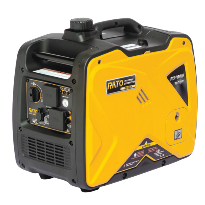 Description: The “NEW” ELECTRIC START RATO R3100iE inverter generator gives that extra 700 watts of running power compared to the R2500is model, making it the perfect gennie for those who want to spend time in the great outdoors, whether it be camping, caravanning or hitting the road in your motorhome or 4WD. With a rated output of 3,000 watts, this quiet and lightweight generator can run for up to 6 hours on continuous 1/2 load operation.