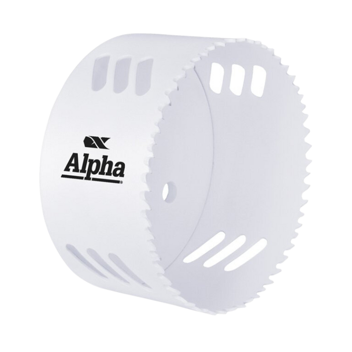 DESCRIPTION: 98mm Holesaw - Bi-Metal FEATURES: Variable tooth unique variable tooth geometry for consistent cutting ability in a wide range of materials | Manufactured to strict Alpha specifications to suit demanding Australian conditions | 8% cobalt Bi-metal gives ultimate performance and superior welding technology prevents tooth strippage