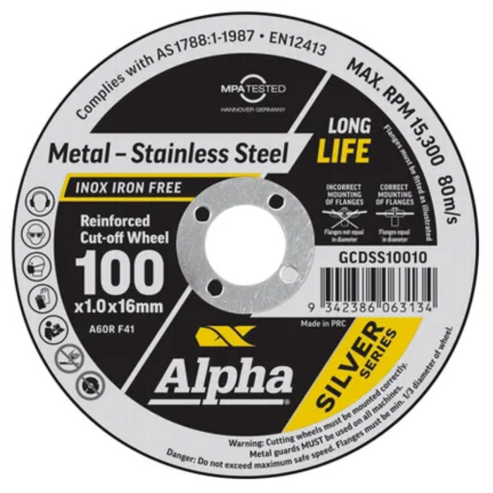 DESCRIPTION: ALPHA Cutting Disc 100 x 1mm Silver Series