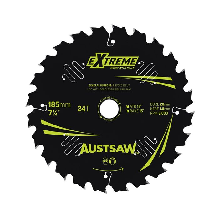 DESCRIPTION: Austsaw Extreme: Wood with Nails Blade 185mm x 20/16 Bore x 24 T