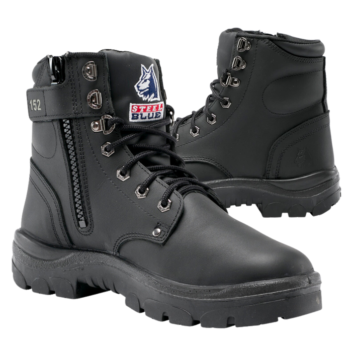 Description: 150mm derby style lace-up and zip ankle boot with padded collar and tongue, Premium water resistant leather and stitched in nylon thread. Non-Corrosive Lacing, 200J safety steel toe cap, Industrial grade side zip for easy on and easy off, This boot is lined with Baltico®, which is a soft, non-abrasive, hydrophobic material that wicks perspiration away from the foot, enabling the skin to remain cool and dry, A full length footbed that is inserted into the footwear to offer additional support and comfort. This footbed is made from soft polyurethane that will retain its shape and thickness throughout the life of the boot, Heavy-duty, flexible anti-bacterial non-woven insole, Directly moulded Polyurethane midsole for greater shock absorption, Antistatic Thermoplastic Urethane (TPU) outsole for superior wear properties. Heat resistant to 130ºC.