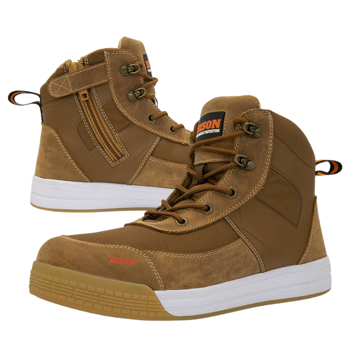 Description: Dune Low Cut Zip Side Lace Up Safety Boot Brown 10