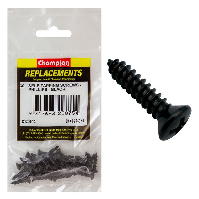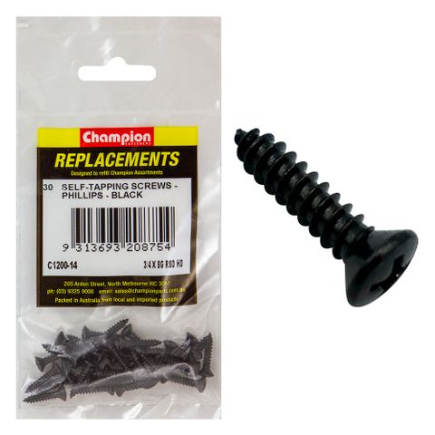 Description: Raised Head, Countersunk, Phillips, Black Zinc, Pack Size: 30