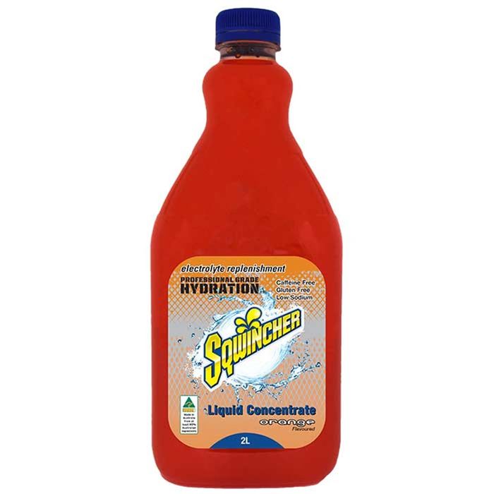 Sqwincher's 2L electrolyte liquid concentrate mixes to 20L of regular Sqwincher. Product Features: Low sodium, Caffeine free, Gluten free, Great taste for increased fluid consumption. Direction of Use: 1. Mix 1 x 2L bottle into a 20L Sqwincher cooler Or: mix to taste into a bottle, glass, or cup. 2. Or: Add a pump spout on the 2L bottle pump 4 times directly into a cup to make 250ml of Sqwincher. (Recommended mixing ratio is 1 part of concentrate to 9 parts water).