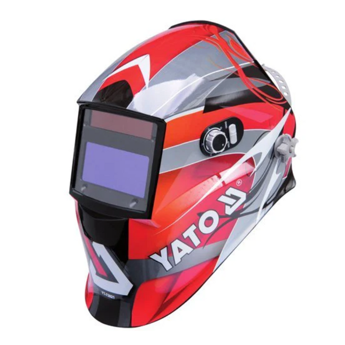 Features: Face Shield: Super, Optical Class: 1 / 1 / 1 / 1, Viewing Area: 98x43mm, Cartridge Size: 126×102×18mm, Arc Sensor: 4, Light State: Din 4, Dark State: Variable Shade, 9 ~13, Shade Control: External,Variable, Power On/Off: Fully Automatic, Sensitivity Control: External, Low - High, By Infinitely Dial Knob, UV/IR Protection: Din16 Power Supply, Solar Cell + Battery Change Required, 2×CR2450 Lithium Batteries, Switching Time: External, 1/25000S, From Light To Dark, Dark To Light: 0.1-1.0S By Infinitely Dial Knob, Low Amperage Tig: ≥5Amps(DC), Grinding Function: Yes, Low Volume Alarm: Yes, ADF Self-Check: Yes, Operating Temp: -5~+55 Cels. Degree, Storing Temp: -20~+70 Cels. Degree, Warranty: 2 Years, Packing Size: 33*23*26cm, Headgear-3000, Included: 5Pcs Outer Cover Lens For Welding Helmet (Yt-73924).