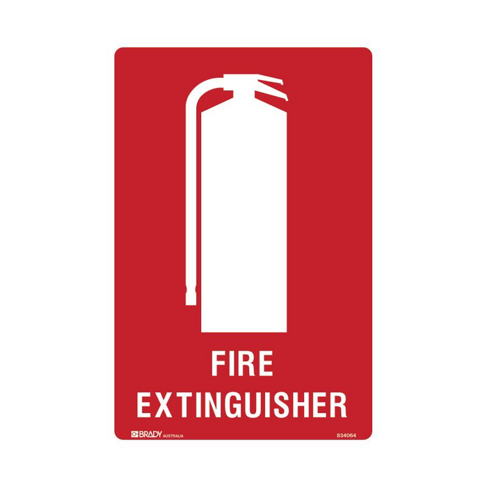 DESCRIPTION: Fire Equipment Sign - Fire Extinguisher, 450 x 300mm - Metal Red/White