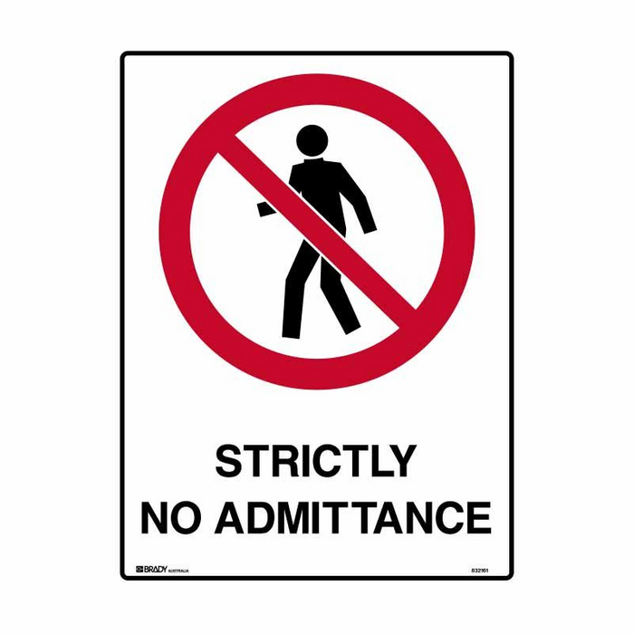 DESCRIPTION: Prohibition Sign - Strictly No Admittance (Polypropylene) H450mm x W300mm White/Red/Black