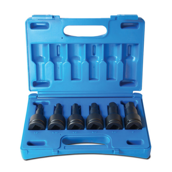 Description: 6 Piece 3/4 Drive Hex Driver, Imperial, 1/2, 9/16, 5/8, 3/4, 7/8, 1, Blow-mold Case.