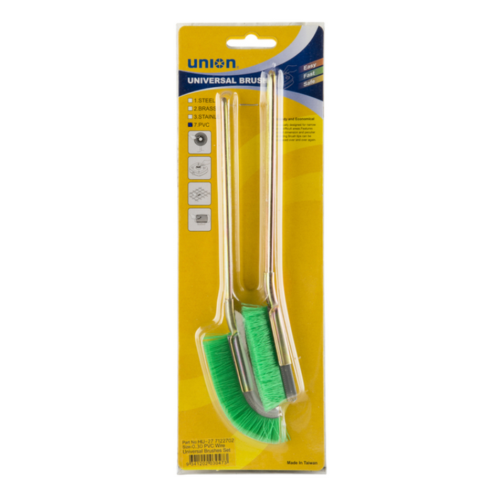 DESCRIPTION: HIJ-27 7122702 Hand Brush Set 2 Piece 0.3mm Green PVC - Straight and Curved Brushes