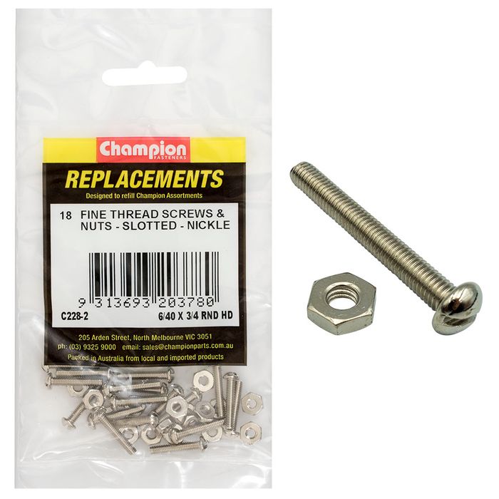 Champion Pan Slot Screws & Nuts 6/40x3/4