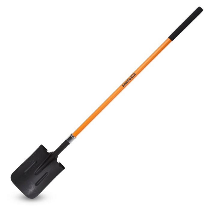 Post Hole Shovel - Long Handle. Handle shaft equipped with a profile for a safe non-slip grip. Hardened powder coated blade made of 50 Mn steel. Reinforced ribs to provide additional blade strength. Large tread with profile enables good foot pressure when digging.