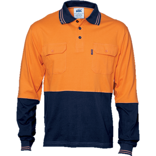 Polo Shirt Hi-Vis Jersey L/S O/Navy L