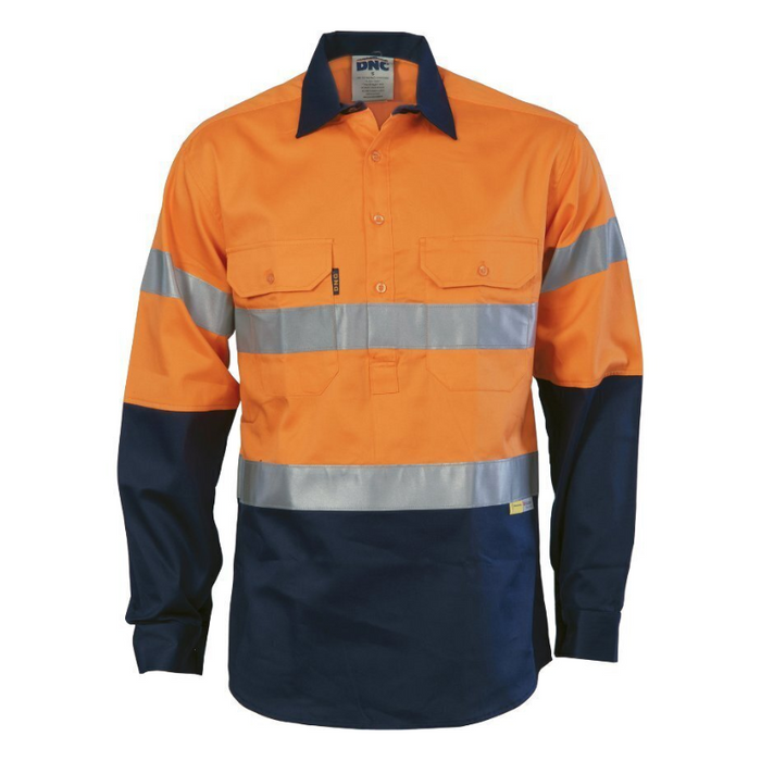 Shirt Cotton Hi-Vis C/Front O/Navy - 2XL