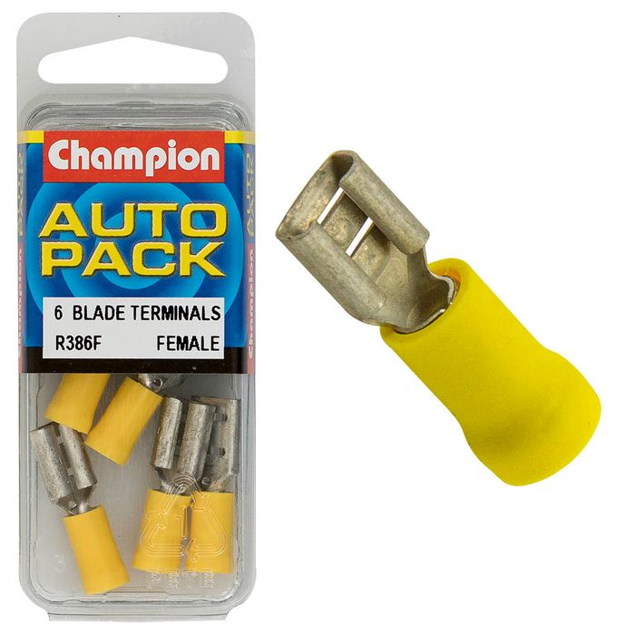 Crimp Terminals Yellow Blade F 8mm Pk6
