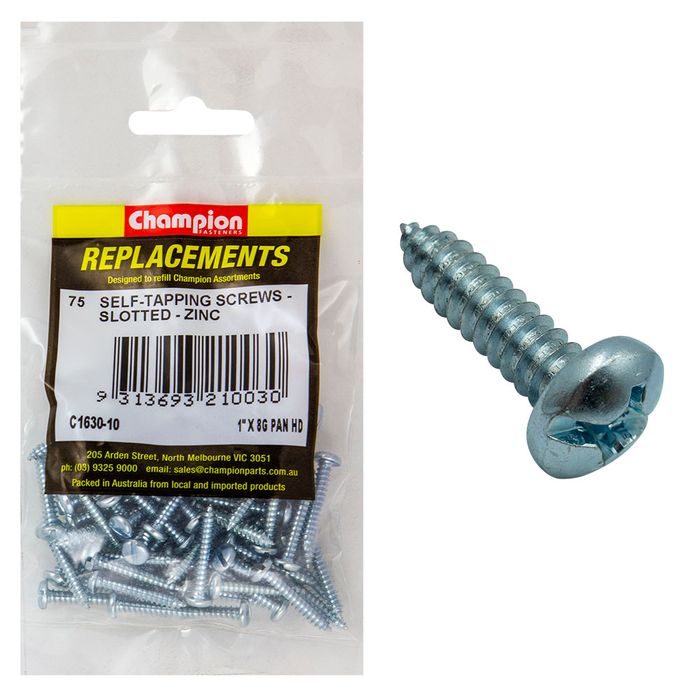 Description: Pan Head, Slotted, Zinc Plated, Pack Size: 75