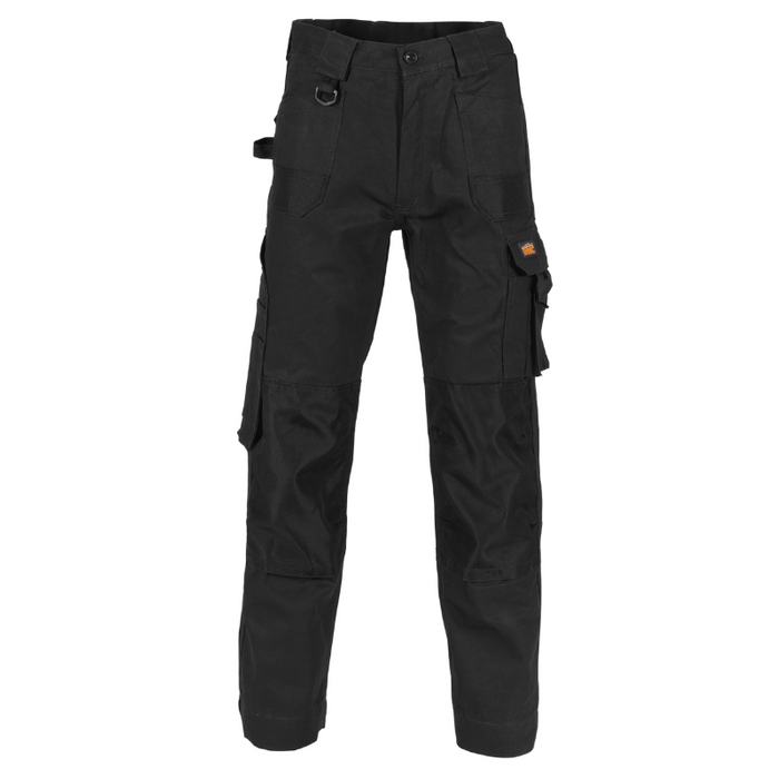 Description: 10 multi functional pockets, including double flap cargo poackets, mobile phone pockets, tool & rule pockets with pen division, two front side pockets, two back pockets. Air flow eyelets between legs. Heavy duty nylon key ring, hammer loop. Duratex patches in knees & stress areas. Knee pad access with hook & loop fasteners closure. Triple stitches seams for extra durability.
