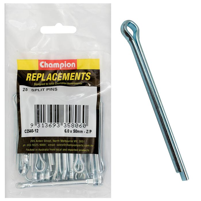 Champion Split Pins 6.0 x 50mm Zinc Pk25