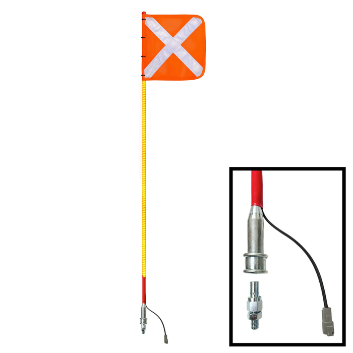 Description: 1.8M Red Full Pole LED 12V Ultra Whip with Female Deutsch Plug / Orange Reflective X Mesh Vehicle Safety Flag / Large Anti-Rotational Quick Release Base