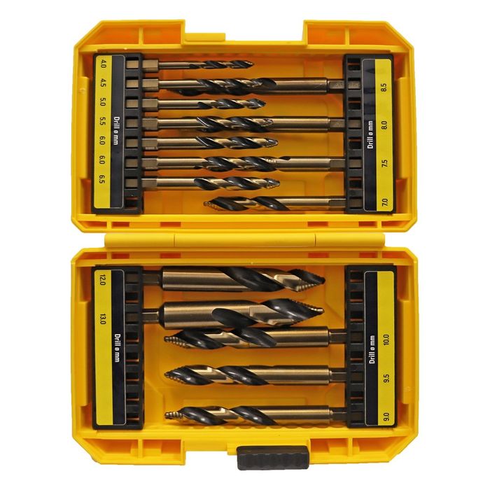 DESCRIPTION:16 Piece | Onsite Plus Impact Step Tip Drill Set FEATURES: 6x Speed, Unique Step Tip, 1/4" Quick Change, 135 degree split point, SET CONTAINS - 4.0, 4.5, 5.0, 5.5, 6.0, 6.5, 7.0, 8.0, 8.5, 9.0, 9.5, 10, 12, 13.