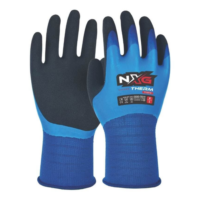 Description: Working in cold conditions is tough as it is. Not having enough grip while working with cold hands is unbearable. Therm Grip has the perfect balance of a warm thermal lining, tripled dipped coating for insulation, durability and waterproofing SuperGrip™ finish provides enhanced grip in wet and cold conditions. NXG have also focused on glove ergonomics to reduce the force needed to grip so workers aren’t at risk of hand fatigue. This includes the shape and fit, as well as keeping the gloves lightweight and flexible. This ensures better safety, productivity, and performance.