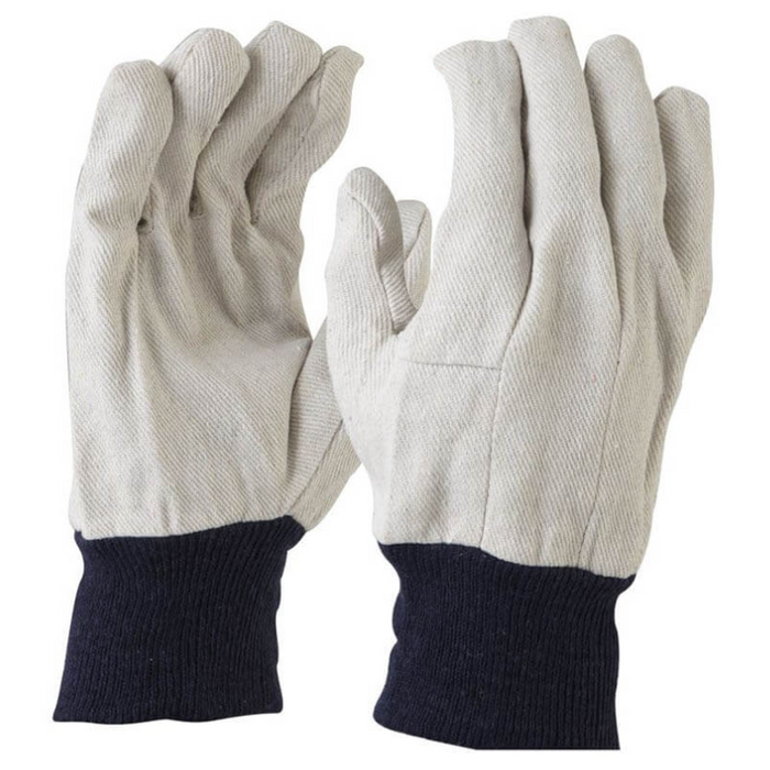 Features: Heavy Duty cotton glove, Knitted wrist. Applications: Light, general purpose work, Component handling, Fruit picking and food handling.