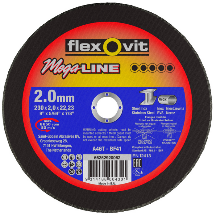 Legacy Code: 15230020 | 230 x 2.0 x 22.23mm A46T-BF41 MEGA INOX ULTRA THIN
