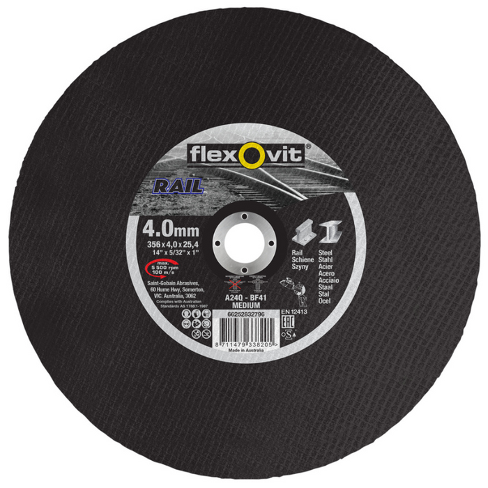 Legacy Code: 3135625 | 356 x 4.0 x 25.4mm A24Q-BF41/100 RAIL CUTTING-OFF WHEELS