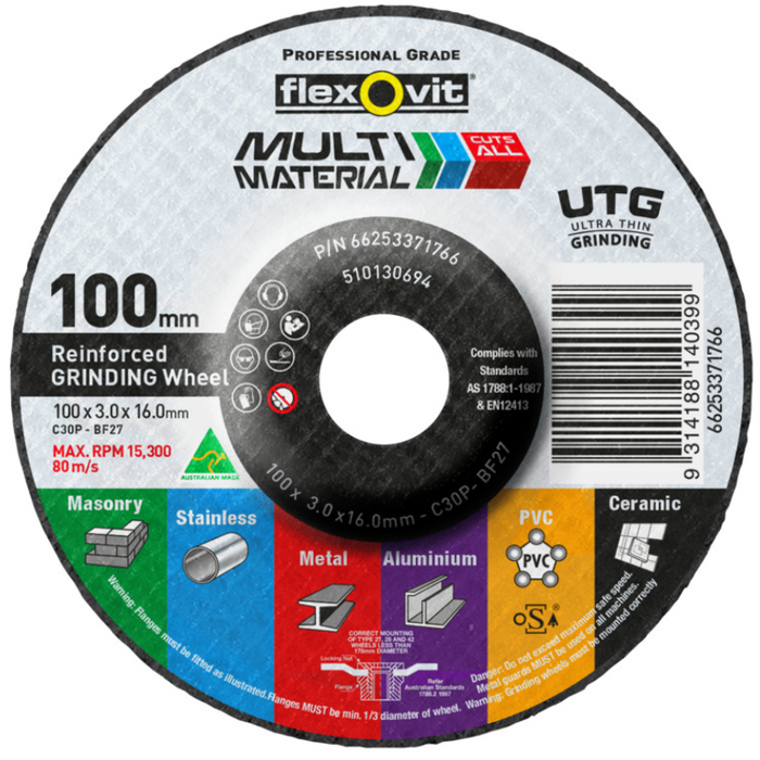 100 x 3.0 x 16.0mm C30/2P ULTRA THIN MULTI MATERIAL DEPRESSED CENTRE GRINDING