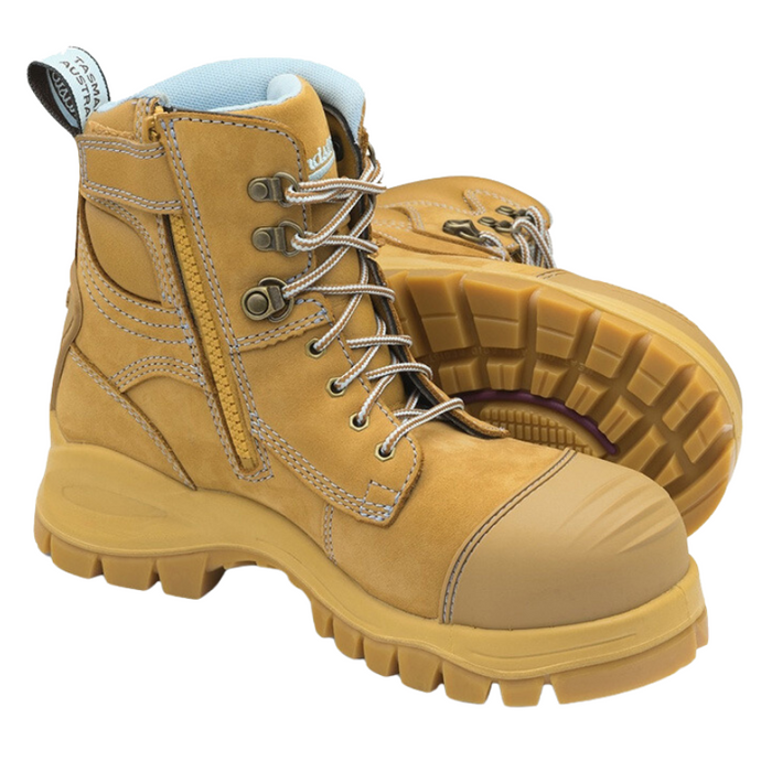 Description: Designed and made specifically for women, the 892 is our latest offering in protective footwear. Packed with features to withstand tough environments and zip sided for easy on easy off accessibility, they’re designed to keep you safe and comfortable all day long. Features include: Water-resistant wheat nubuck leather upper, Padded collar and tongue and a breathable, anti-bacterial lining, Moulded TPU toe guard for added abrasion protection, A tough outsole that’s oil, acid and organic fat resistant and can withstand temperatures up to 300°C. The strong TPU rubber also protects against cuts and provides excellent slip resistance, Comfort is key – the PU midsole provides excellent shock absorption and added XRD® layers in the heel and forepart as well as the footbed ensure maximum satisfaction, A steel shank ensures torsional stability, keeping your joints safe while the steel toe cap can withstand impacts up to 200 joule.