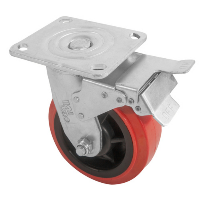 Castor 150mm Swivel/Brke Red Ureth 410kg