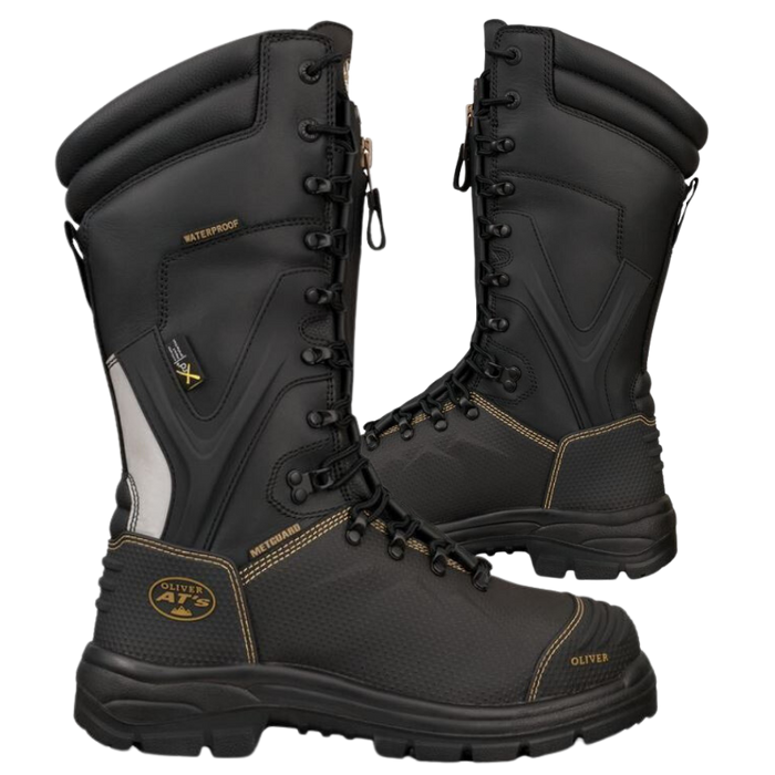 DESCRIPTION: Oliver AT 65-791 350MM BLACK LACED IN ZIP MINING BOOT | 100% waterproof premium full grain leather steel toe mining boot | Colour: Black | Avail to order in Sizes: 4 - 16, 6½ - 12½ | Standards: AS/NZS 2210.3:2019 EN ISO 20345:2011 ASTM F2413-18 S3 rating (AS/NZS 2210.3:2009) Waterproof and penetration resistance | Application: Mining & Quarrying / Chemical / Oil & Gas