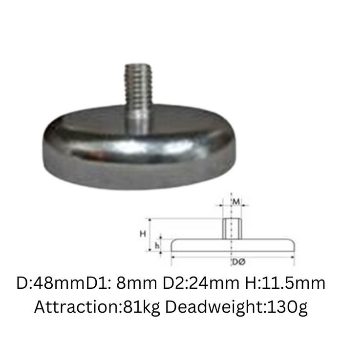 M8 Male Thread Pot Magnet 48mm 81kg