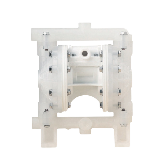 DESCRIPTION: AIR OPERATED DIAPHRAGM PUMP - 1/2" | The DDP13 offers an economical fluid transfer option where medium to high flow rates are needed with little back-pressure. The ability to dry-run allows easy priming while operating without any damage to the pump. A removable air valve offers repairs to be made while the pump is still fitted in place for quick simple maintenance. Multi-ported inlet and outlet manifolds offer a variety of options when making fluid connections. The all Polypropylene body allows this pump to be used with a range of compatible chemicals as well as the new or used oils and engine coolants (RTU), diesel or oily water applications. Fully repairable and spare parts are readily available. Not suitable for flammable liquids. Macnaught Advantage 2-Year warranty for manufactured components and 1-Year warranty on wear components.TECHNICAL SPECIFICATIONS: Maximum Air Pressure: 690kPa (100psi) | Inlet / Outlet Ports: 1/2" NPT(F) | Air Inlet Size/Type: 3/8" NPT(F) | Maximum Flow Rate: 42 L/min (viscosity dependant) | Suction Lift: 3.6m (dry) / 9.1m (wet) | Maximum Solids Handling: 1.6mm (0.0625") | Fluid temperature range: 0ºC - 82ºC | Maximum noise level: 86 dB(A) | Fluid Compatability: Oils (new & used), Engine Coolants RTU (new & used), oily water, Diesel | Wetted Components: Polypropylene (body & valve seats), Buna N (diaphragms), Acetal (check valves) PACKAGE INCLUDES: DDP13 Air-Operated Double Diaphragm Pump 1/2" ported + Air Exhaust Muffler 3/8" NPT(M) + Instruction Manual