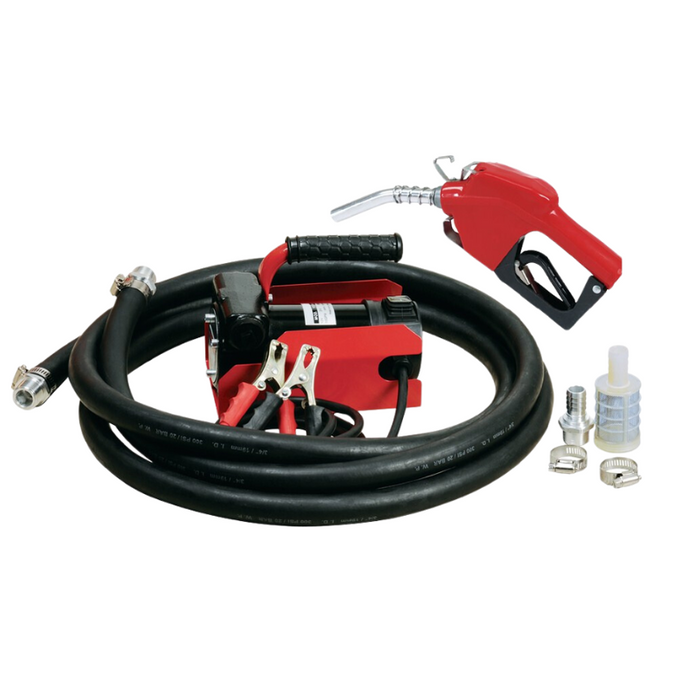 DESCRIPTION: General purpose 12V Diesel Pump KITS available in automatic and manual configurations providing portability. These pumps are self- priming rotary vane pumps, with a 30 minute duty cycle that delivers the convenience and provide peace of mind reliability. TECHNICAL SPECIFICATIONS: Flow rate up to 40LPM (free flow) | Suitable for diesel use only | 30min duty cycle | Inlet/Outlet: 3/4” BSP (F) | Self-priming rotating vane pump | IP55 protection | Built in by-pass valve | 12V DC pump unit with carry handle | 2m power cable with alligator clips | 25A fuse holder | Automatic nozzle or manual nozzle | Pump not sold separately | No spare parts available