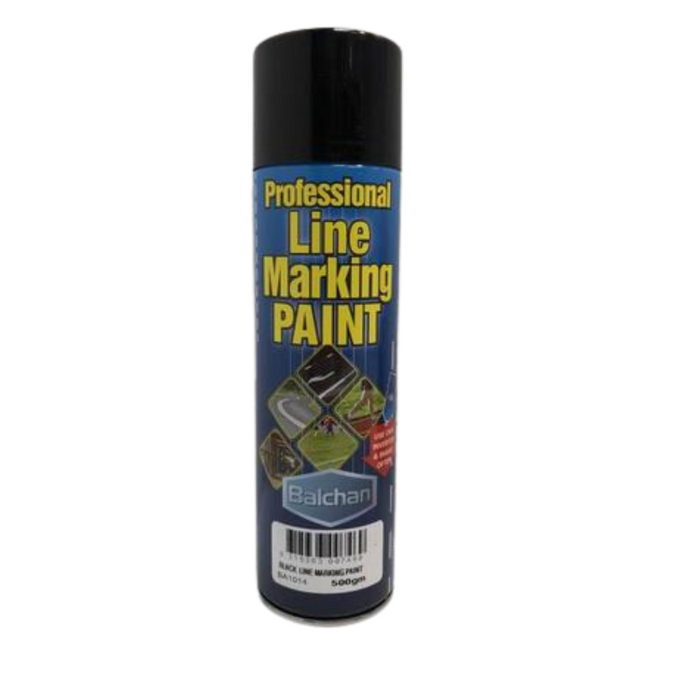 DESCRIPTION: Balchan Line Marking Paint is a quick drying, long lasting, highly durable spray marker appropriate for a variety of applications including: Landscaping, Construction sites, Surveying, School Grounds, Sporting Fields and Courts, Warehouses, Factories, Golf Courses, Parking Lots, Road Surfaces and the Backyard. Use on concrete, bitumen, grass, gravel, dirt and timber surfaces. [Available to torder in White, Black, Yellow, Blue][12 cans per carton]
