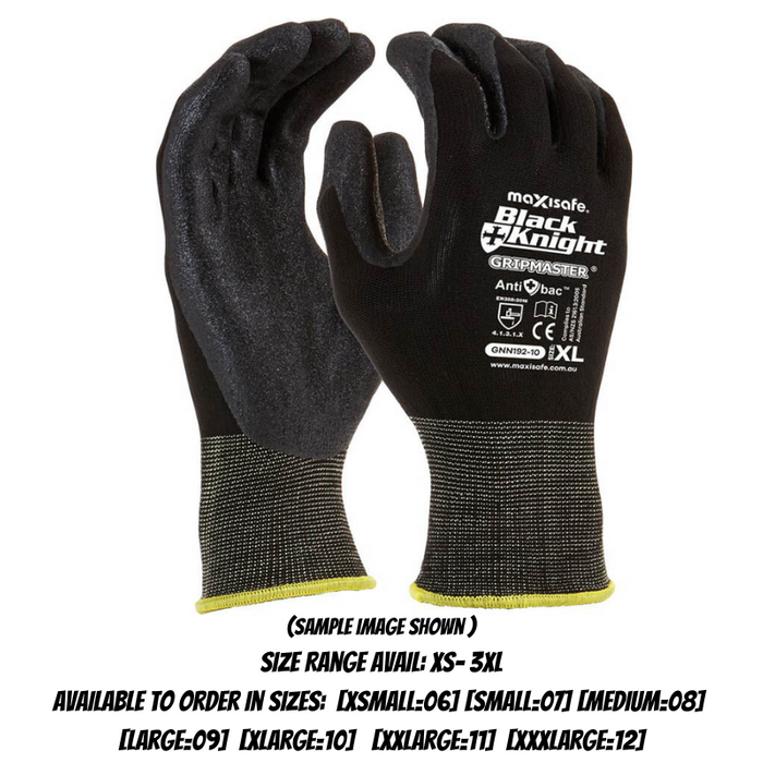 DESCRIPTION: Black Knight Gripmaster Coated Glove. Maxisafe's Black GripmasterĀ® coating technology ensures the Black Knight has excellent grip in wet, oily environments